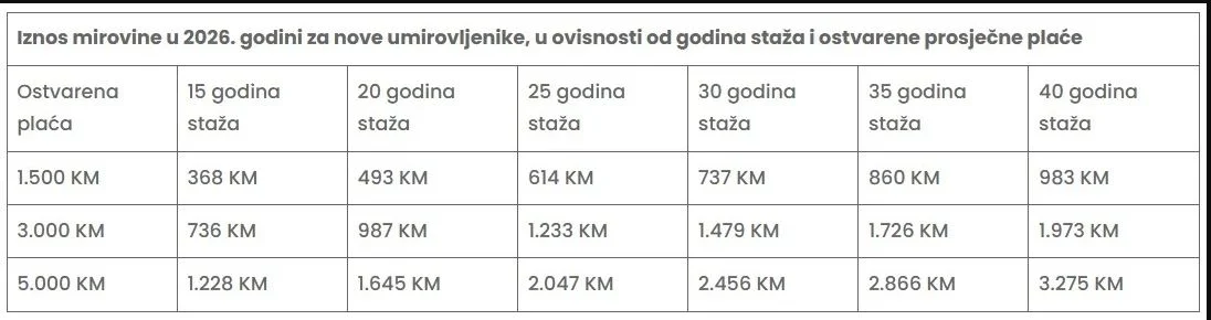 Obračun visine penzije za korisnike koji pravo ostvaruju u 2026. godini