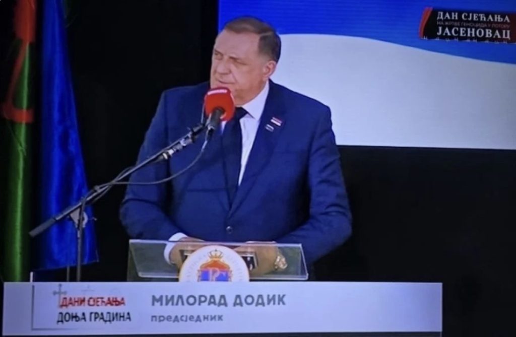 Milorad Dodik ponovo je iskoristio komemoraciju u Donjoj Gradini za promociju svojih političkih stavova, obmanjujući prisutnu javnost i kršeći zvanični protokol. Tokom skupa posvećenog žrtvama genocida u Jasenovcu, on je nastupao kao aktuelni zvaničnik, ignorišući činjenicu da više ne obnaša funkciju predsjednika entiteta RS, izvijestila je BN Televizija.