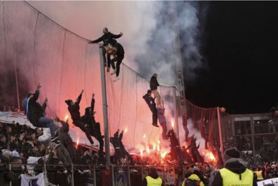 Navijači Bosne i Hercegovine pokazuju svoj entuzijazam kako bi obilježili plasman svoje reprezentacije na Svjetsko prvenstvo. (Fotografija: Fabio Ferrari/AP)